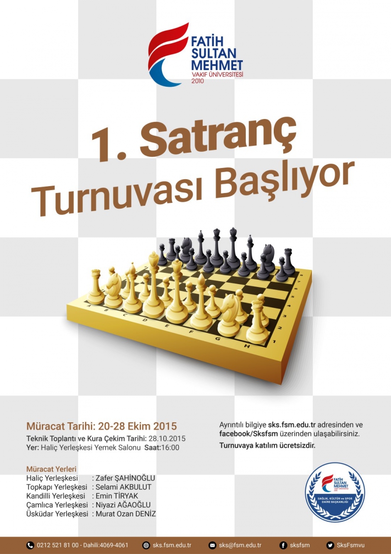 - Satranç Turnuvasına Fatih Sultan Mehmet Vakıf üniversitesi öğrencileri ile idari ve akademik personel katılabilir. Üniversite dışından katılım kabul edilmeyecektir
