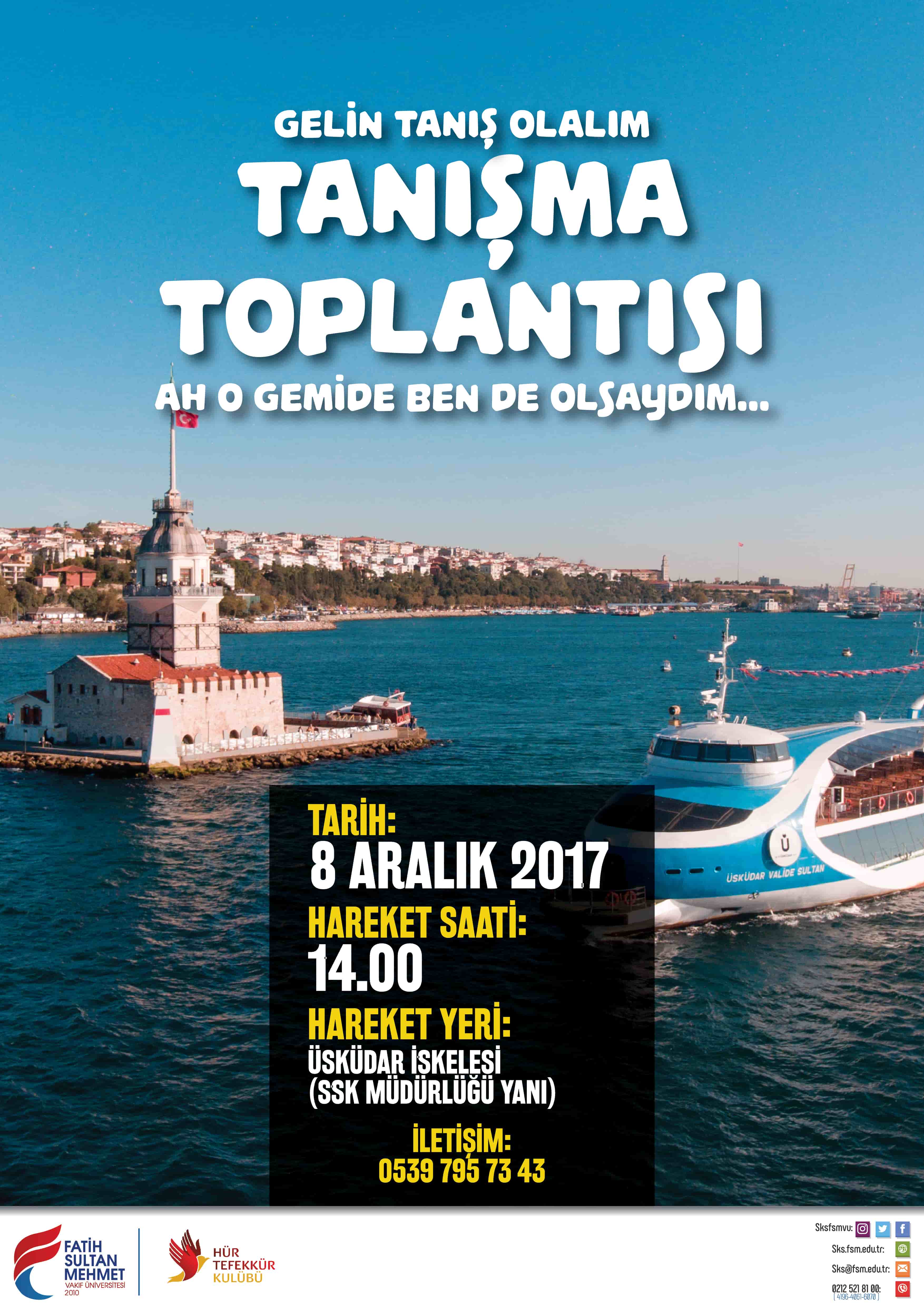 Hür Tefekkür Kulübü'nün düzenlediği tanışma programı 8 Aralık Cuma, 14.00'te gerçekleştirilecektir. Üsküdar Valide Sultan Gemisinde gerçekleşecek olan etkinliğe tüm öğrencilerimiz davetlidir.