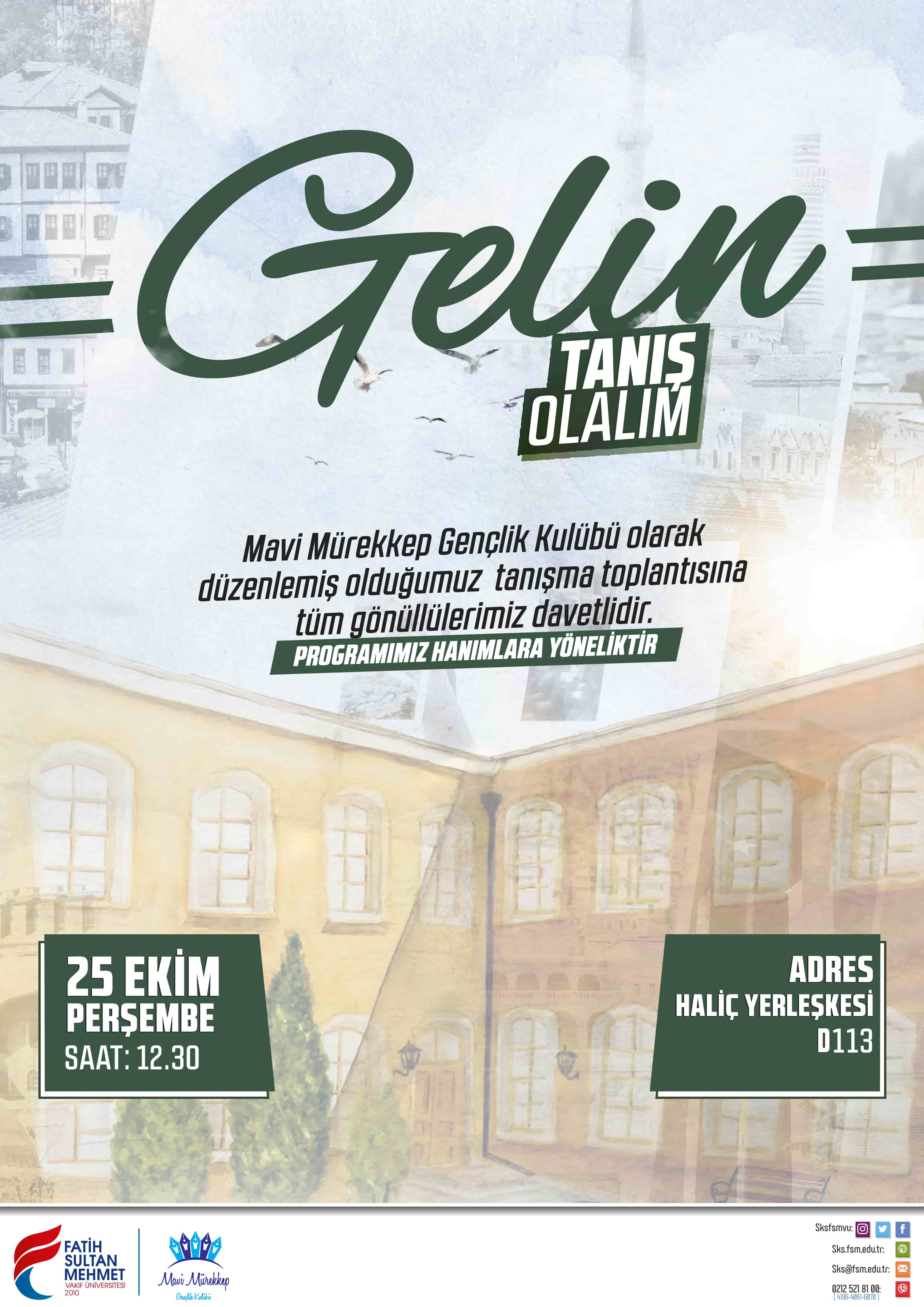 Üniversitemizin Mavi Mürekkep Kulübü tarafından düzenlenen tanışma programı 25 Ekim Perşembe günü gerçekleştirilecektir. Haliç yerleşkesi D113'te gerçekleştirilecek olan programa tüm öğrencilerimiz davetlidir.