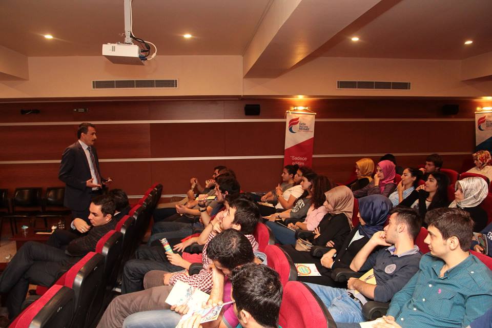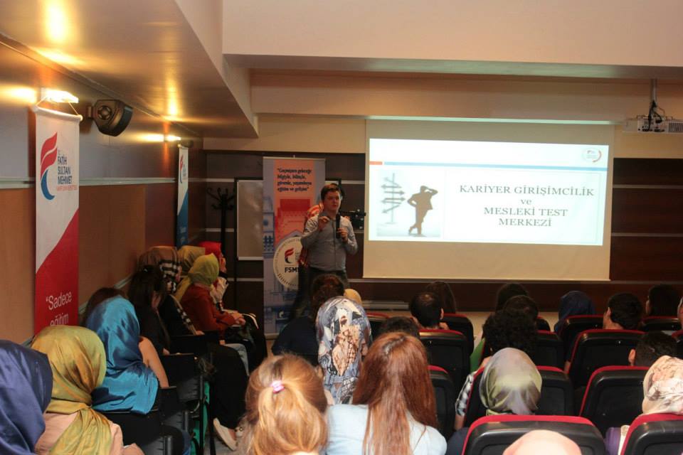 Fatih Sultan Mehmet Vakıf Üniversitesi 2014 – 2015 Eğitim – Öğretim Yılı başlangıç etkinlikleri kapsamında Küçük Çamlıca Yerleşkesi’nde Sağlık Kültür ve Spor Daire Başkanlığı ve Kariyer Girişimcilik ve Mesleki Test Merkezi işbirliği ile 23.09.2014 Salı günü Üniversitemize yeni başlayan Hazırlık Sınıfı öğrencilerimize yönelik Uyum Günleri programının ilki gerçekleştirildi. Yaklaşık 400 öğrencimizin katılımıyla gerçekleştirilen Uyum Günleri programımızda sırasıyla İngilizce Hazırlık Okulu Müdürü Osman SABUNCUOĞLU ve Rektörümüz Prof. Dr. Musa DUMAN’ın açılış konuşmalarının ardından Sürekli Eğitim Uygulama ve Araştırma Merkezi ve Kariyer Girişimcilik ve Mesleki Test Merkezi Müdürü Yrd. Doç. Dr. Ahmet AVCI, Sağlık Kültür ve Spor Daire Başkanı Kudret DOĞAN, Öğrenci İşleri Daire Başkan Vekili Emre BAYIR, Bilgi İşlem Daire Başkanı Mehmet KÖSEM, Kütüphane Dokümantasyon Birim Müdürü Lütfü KILINÇ, Kariyer Girişimcilik ve Mesleki Test Merkezi Genel Koordinatörü Soner ÖRNEKOL ve Sürekli Eğitim Uygulama ve Araştırma Merkezi Kurumsal İlişkiler Koordinatörü Serhat HAZNEDAROĞLU öğrencilerimize Üniversite hayatları boyunca destek olacak birimler hakkında sunum gerçekleştirdi.Öğrencilerimizin eğitim süreleri boyunca; eğitim, sağlık, sosyal, kültür, öğrenci işleri, kütüphane, bilgi işlem ve kariyer çalışmaları kapsamında alacakları destekler konusunda bilgilendirilmelerinin ardından Sağlık Kültür ve Spor Daire Başkanlığı ve Kariyer Girişimcilik ve Mesleki Test Merkezi işbirliği ile hazırlanan “FSMVÜ’de Yaşam Rehberi” öğrencilerimize dağıtıldı. Bilgi İşlem Daire Başkanlığı tarafından Dijital Duyuru Ekranları ve Üniversitemiz ana sayfasında “FSMVÜ’de Yaşam Rehberi” öğrencilerimizin ve akademik – idari personelin hizmetine sunulmuştur.