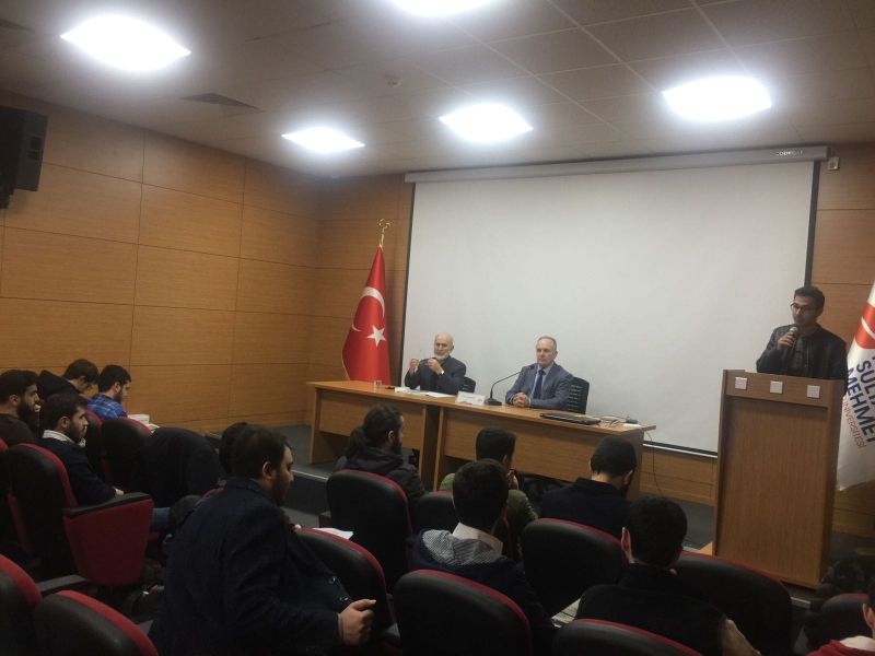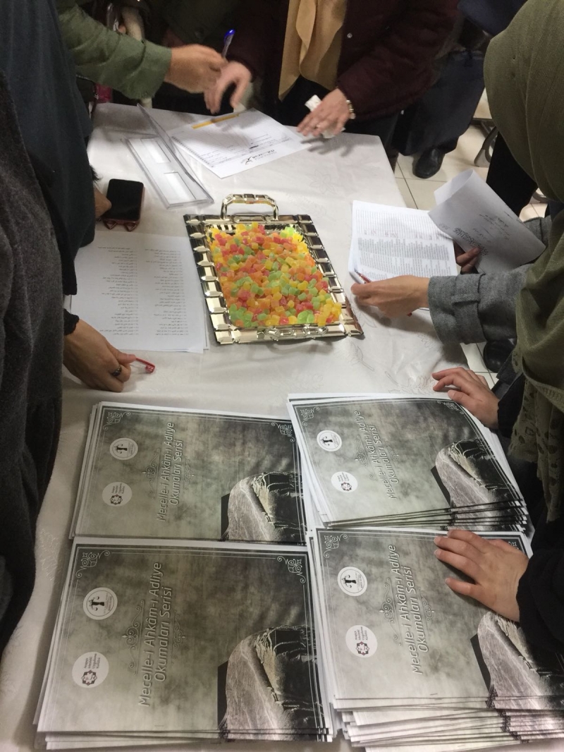 Üniversitemiz Arapça Mesleki Uygulama Kulübü ve Hukuk Kulübü tarafından düzenlenen “Mecelle-i Ahkam-ı Adliye Okuma Serisi” konferans programının ilki 21 Şubat 2018 tarihinde Yrd. Doç. Dr. Sayın Ahmet Efe hocamızın katılımı ile Fatih Yerleşkesi Konferans Salonunda öğrencilerin yoğun katılımı ile gerçekleştirildi. Kulüp yönetimi tarafından hazırlanan Osmanlıca yazılı Mecelle nüshaları, program öncesinde katılımcılara verildi. Fakülte Dekanı Sn. Ahmet Turan Arslan’ın konuşları ile başladı. Sonrasında konuşmalarına başlayan Sn. Ahmet Efe konuşmasına, programın gerçekleştirilmesi için gayret gösteren kulüp yönetimine teşekkür ederek başladı. Mecelle’nin önemi üzerine konuşmalarına devam eden hocamız, konferans serimizin ilk aşamasında Mecelle ’nin ilk dört maddesini detaylıca işledi.