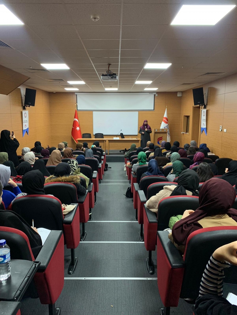 Üniversitemiz Arapça Mesleki Uygulama Kulübü tarafından düzenlenen "Müslüman Kadının Feminizm'e Bakış Açısı" konulu konferans 5 Aralık Perşembe günü Fatih Yerleşkesi Konferans Salonunda gerçekleştirildi. Bu konferansta Feminizm'in ne olduğu, ortaya çıkma sebeplerini anlatan konuşmacı Dilek Çelenk, Müslüman bir kadının feminizme ihtiyacı olmadığı, İslam'ın zaten kadını müşerref kıldığından bahsetti. Yoğun ilgi ile karşılanan program hediye takdimi ile sona erdi.