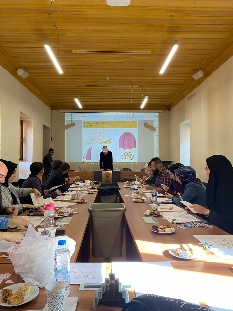 Uygulamalı Bilim Tarihi Atölyelerinin üçüncüsünde eğitmen Henk Hietbrink gözetiminde kâğıt üzerinde mukarnas denemeleri yapıldı.