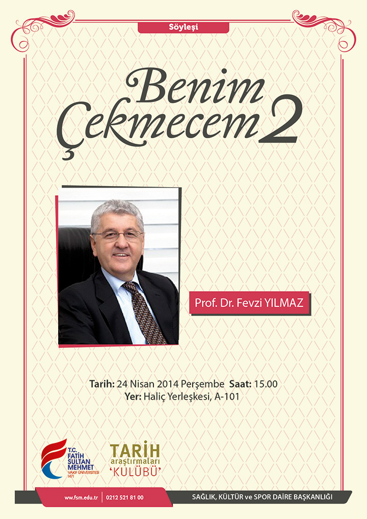 Üniversitemiz, Tarih Araştırmaları Kulübü, 24 Nisan 2014 Perşembe günü Benim Çekmecem söyleşi dizisi kapsamında Mühendislik-Mimarlık Fakültesi dekanımız Prof. Dr. Fevzi Yılmaz’ı ağırladı. Yrd. Doç. Dr. Ebubekir Koç’un moderatörlüğündeki söyleşide hocamız akademik hayatı, yurtdışı tecrübeleri, ilgi alanları ile alakalı merak edilen soruları cevaplandırdı. Özellikle akademik hayatın çalışmalara yansımayan kısımları üzerinde duran Prof. Yılmaz, öğrencilere şiddetle, kendilerine akademik ve sosyal yatırım yapmalarını ve kendilerini çok donanımlı yetiştirmelerini tavsiye etti. Öğrenciler ile idari ve akademik personelin yoğun ilgi gösterdiği program soru cevap katkı faslıyla son boldu.