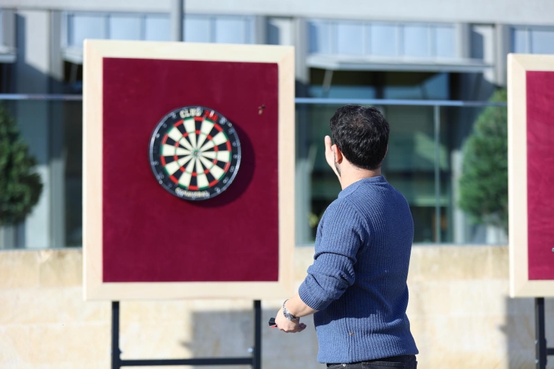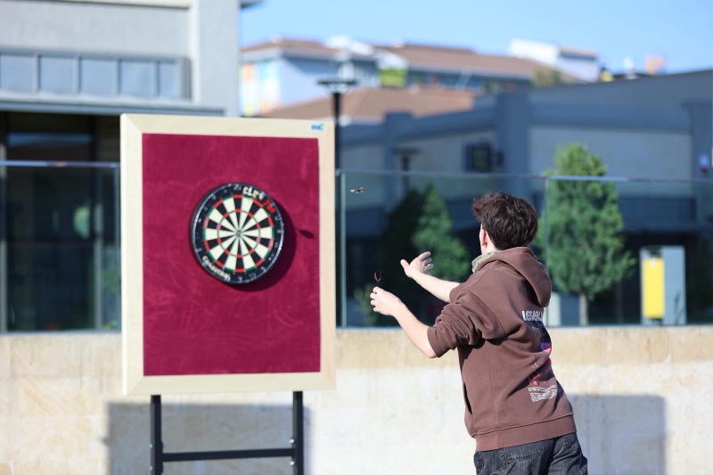 Üniversitemiz bünyesinde yerleşkelerimizde ayrı ayrı düzenlenen dart turnuvalarının ardından, yerleşke birincileri Topkapı Yerleşkesi’nde gerçekleştirilen final müsabakalarında karşı karşıya geldi. Büyük çekişmeye sahne olan finaller, sporun yanı sıra eğlenceli ve keyifli anlara da ev sahipliği yaptı