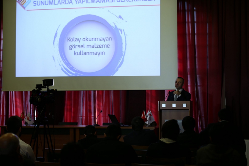 Sağlık Kültür ve Spor Daire Başkanlığı ile Dünya Gençlik Kulübü’nün organizasyonu “Etkili Sunum Teknikleri” seminerinde doğru sunumun hazırlanma süreci anlatıldı.