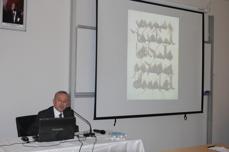 Prof. Dr. M. Hüsrev Subaşı, mühendislik öğrencilerine hat sanatının doğuşunu anlatırken yapılar üzerinde nasıl işlendiğinin birkaç örneğini de paylaştı. “Arap menşei bir alfabede yer alan harflerinin estetik boyutlarda tasarımıyla ortaya çıkan sanata hat sanatı denir.” diyen Subaşı, bu sanatın Arap harfleriyle oluşturulmasına rağmen dünyada Türk sanatı olarak algılandığının altını çizdi. Bunun sebebini ise Osmanlı asırlarında hat sanatına verilen emeğe ve sanatın geliştirilmesine bağladı.
