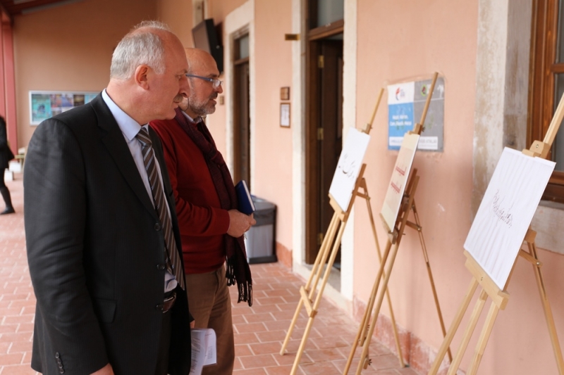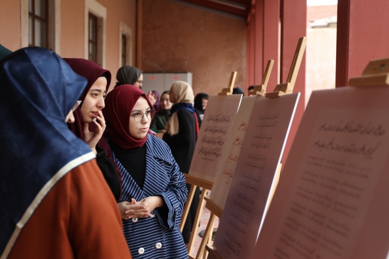 Panel öncesi Geleneksel Türk Sanatları Bölümü öğrencilerinin eserlerinden oluşan mini bir hat sergisi de ziyaretçilere sunuldu.