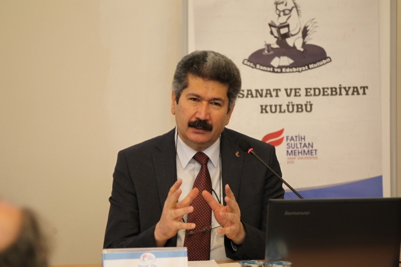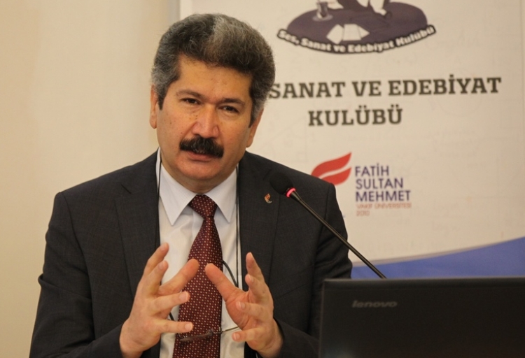 Rektörümüz Prof. Dr. M. Fatih Andı, hüsn-i hat sanatının temel özelliklerini, resim ve divan şiiri ile bağlantısını ele aldığı konuşmasında, bu sanatın tüm İslâm sanatlarından daha fazla İslâm medeniyetini sanat bağlamında temsil ettiğini vurgulayarak, “Hüsn-i hat belki de İslâm sanatlarının ‘anası’ demeye layık bir sanat. Elbette bu minyatürün, tezhibin temsil etmediği anlamına gelmez ama oransal olarak baktığımızda Kur’an-ı Kerim’in yazısıyla imal edilmesi, daha çok ayet ve hadisler üzerinden kendisini inşa etmesi dolayısıyla hüsn-i hat sanatı bir temsilci sanattır.” dedi.