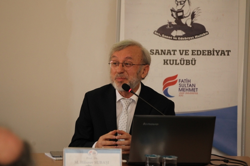 Güzel Sanatlar Fakültesi Dekanı Prof. Dr. M. Hüsrev Subaşı, hat ve hikmet ilişkisi üzerinden edebiyatla hat sanatının iç içeliğine dikkati çekerek, “Hat sanatı edebi zevkimizi, edebiyat üzerinde oluşan irfanımızı toplumun genç dimağına aktaran bir vasıta gibidir. Bir hat eserine baktığınız zaman hem hikmeti ve irfanı algılar hem de başka birine onu aktarırsınız.” diye konuştu.
