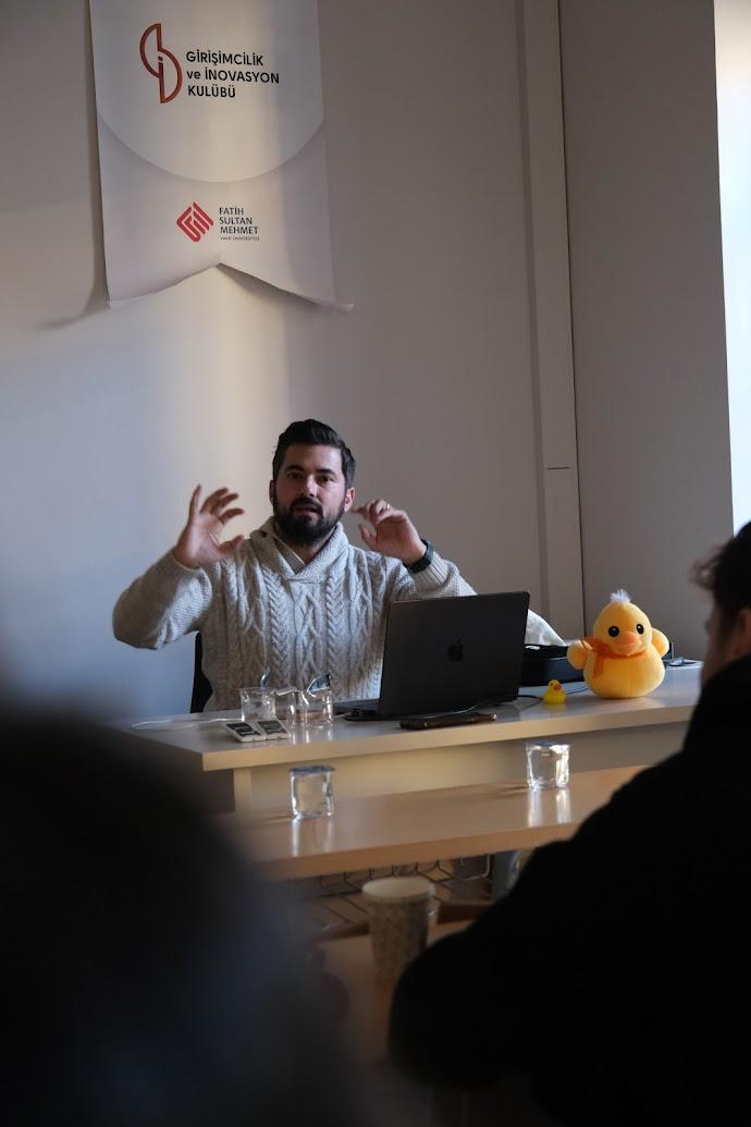 Etkinlik serisinin ilk konuğu olan Ismarlıyo ve Teknevia kurucusu Mert Güler, girişimcilik yolculuğunu ve hayata geçirdiği girişimleri katılımcılarla paylaştı. Konuşmasında, girişim fikrinin ortaya çıkış sürecinden itibaren karşılaşılan zorluklar, bu zorlukların nasıl yönetildiği ve girişimcilik sürecinde edinilen tecrübeler üzerinde durdu. Ayrıca girişimcilik ekosisteminde başarısızlığın bir öğrenme süreci olduğuna dikkat çekerek öğrencilere önemli tavsiyelerde bulundu.