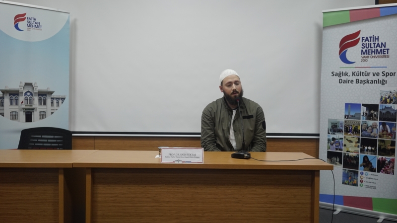 Üniversitemiz İslam Dünyası ve İletişim Kulübü tarafından gerçekleştirilen “Mezhepler arası ihtilaflar” adlı konferans İslami İlimler Fakültesi Dekanı Prof. Dr. Ahmet Turan Arslan Hoca’nın konuşmaları ile başladı. Dekan Ahmet Turan Arslan’ın konuşmasının ardından İslami İlimler öğrencisi Yasin Dumlu’nun Aşr-ı Şerif okuması ile devam etti.