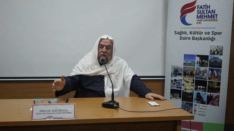 Kur-an’ı Kerim tilavetinin ardından, Medine Taybe Üniversitesi Hanefi Fıkıh Uzmanı Prof. Dr. Said Bekdaş konuşmalarına başladı. Fıkıh mezhepleri açısından fakihlerin ihtilaf ettiği konular ve müslümanların bu durumlardan nasıl etkilendiğine değinen Bekdaş, yeryüzünde bulunan dört mezhebin de hak olduğuna, Allah (c.c) tarafından müslümanlara ikram edildiğine değindi. Fakihlerin ihtilaflarının bu ümmet için birer rahmet kaynağı olduğunu dile getirerek bu farklı görüşlerin yalnızca mezhepler arasında cereyan eden bir durum olmadığına aksine bu farklılıkların ve farklı görüşlerin İslam'ın ilk muhatapları olan sahabeler arasında da görüldüğüne işaret ederek bu farklı yorumların kitabımız olan Kuran-ı Kerim in birçok vechinin olmasına bağlı olduğunu dile getirdi.