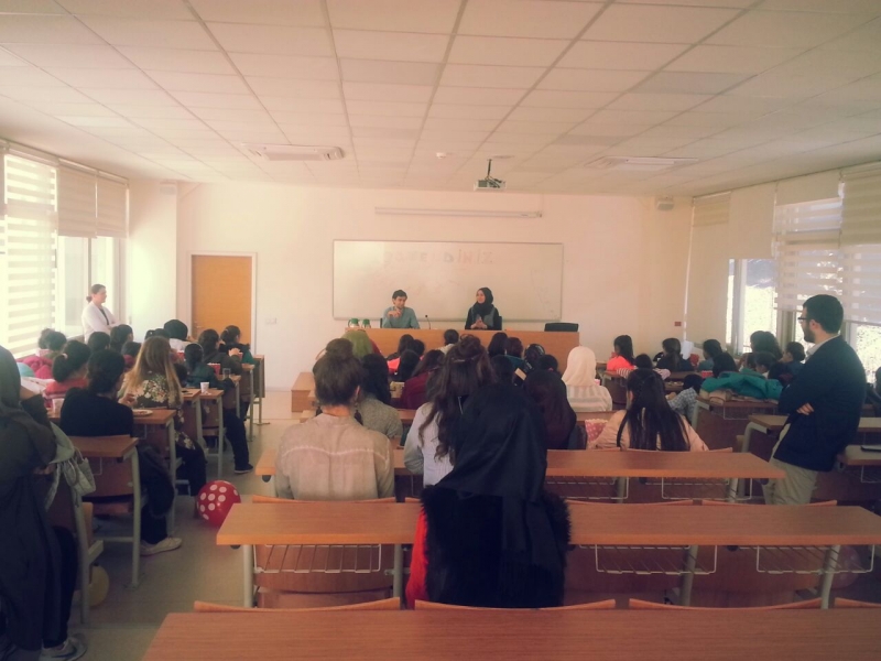 Üniversitemizin İdeal Hukuk Kulübünün daveti üzerine 4 Mart Cumartesi günü Kasımpaşa Çocuk Esirgeme Kurumundaki öğrencilerimizi üniversitemizde ağırladık. Kurumdan gelen 42 kız öğrencimiz üniversitemizin tarihi çınar altında etkinlikte gönüllü olan öğrencilerle sohbet ettikten sonra üniversitemizi gezdiler. Geleneksel Türk Sanatları öğrencilerimizin öncülük ettiği ebru sanatını icra edip hayatlarında bir ilki yaşadılar. Etkinliğin temel amaçlarından biri de öğrencilerimize gelecek vizyonu kazandırmaktı. Bu doğrultuda çeşitli meslek grupları tanıtılıp anlatıldı. Üniversitemizin laboratuvarları gezdirilip meslekler sahasında gösterildi.