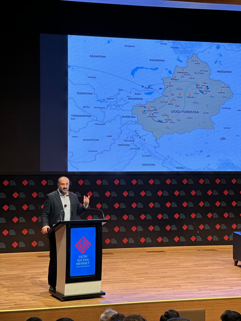 Fatih Sultan Mehmet Vakıf Üniversitesi Makdis Araştırmaları Kulübü ve Doğu Türkistanlı Öğrenciler topluluğunun düzenlediği konferansta, Doğu Türkistan coğrafyası ve bölgeye dair farkındalık konusu ele alındı.