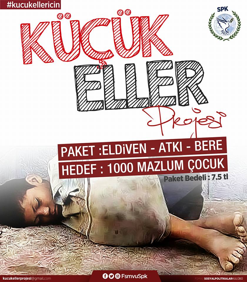 Sosyal Politikalar Kulübü üyelerinin hazırladığı “Küçük Eller Projesi”ne bağışlanan atkı, bere ve eldivenler Sultangazi Necip Fazıl Mülteci Okulu’nda öğrencilere ve şehrin çeşitli semtler inde parklarındaki çocuklara hediye edillerek Projeleri son buldu. Bu bağlamda Sosyal Politikalar Kulübü başkanı Furkan YILDIRIMHAN ile sosyal proje hakkında röportaj yapıldı.