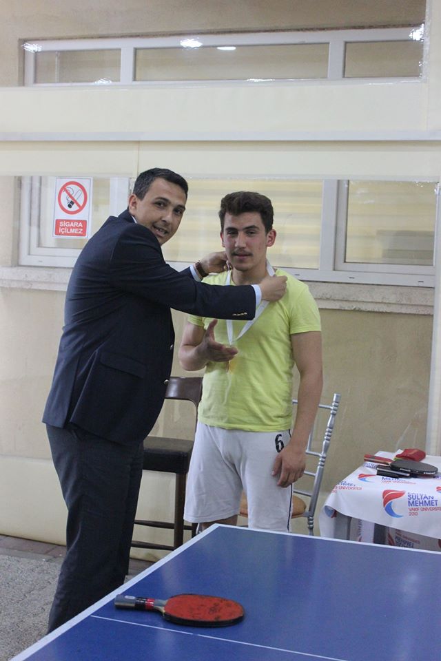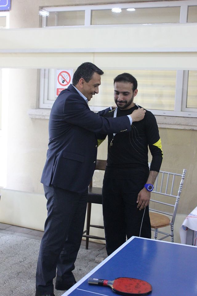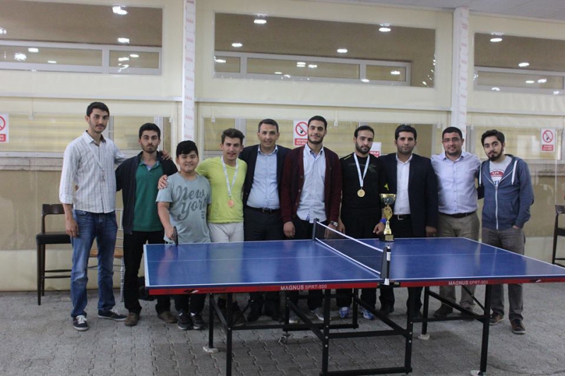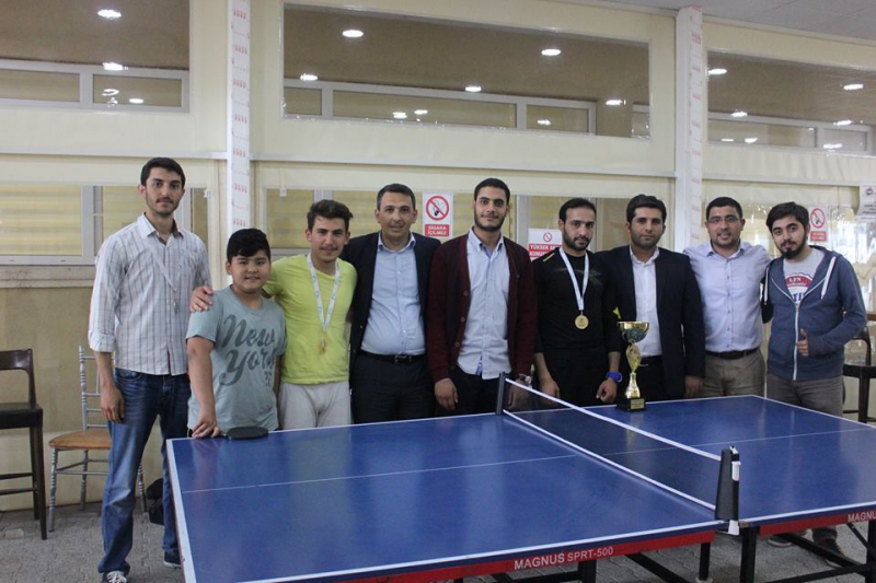 Sağlık Kültür ve Spor Daire Başkanlığı’nın 27-28 Mayıs 2015 tarihlerinde organize ettiği masa tenisi turnuvasında yapılan müsabakalarda final heyecanı yaşandı. Daire Başkanı Kudret DOĞAN ve Şube Müdürü Levent Akbulut’unda izlediği final müsabakası sonunda;birinciliği Mohammed ALMABOUH, ikinciliği Ramazan AYDIN üçüncülüğü ise Abdurrahman ÖZTÜRK elde ederken, başarı gösteren öğrencilere ödüllerini Daire Başkanımız Kudret DOĞAN takdim etti.