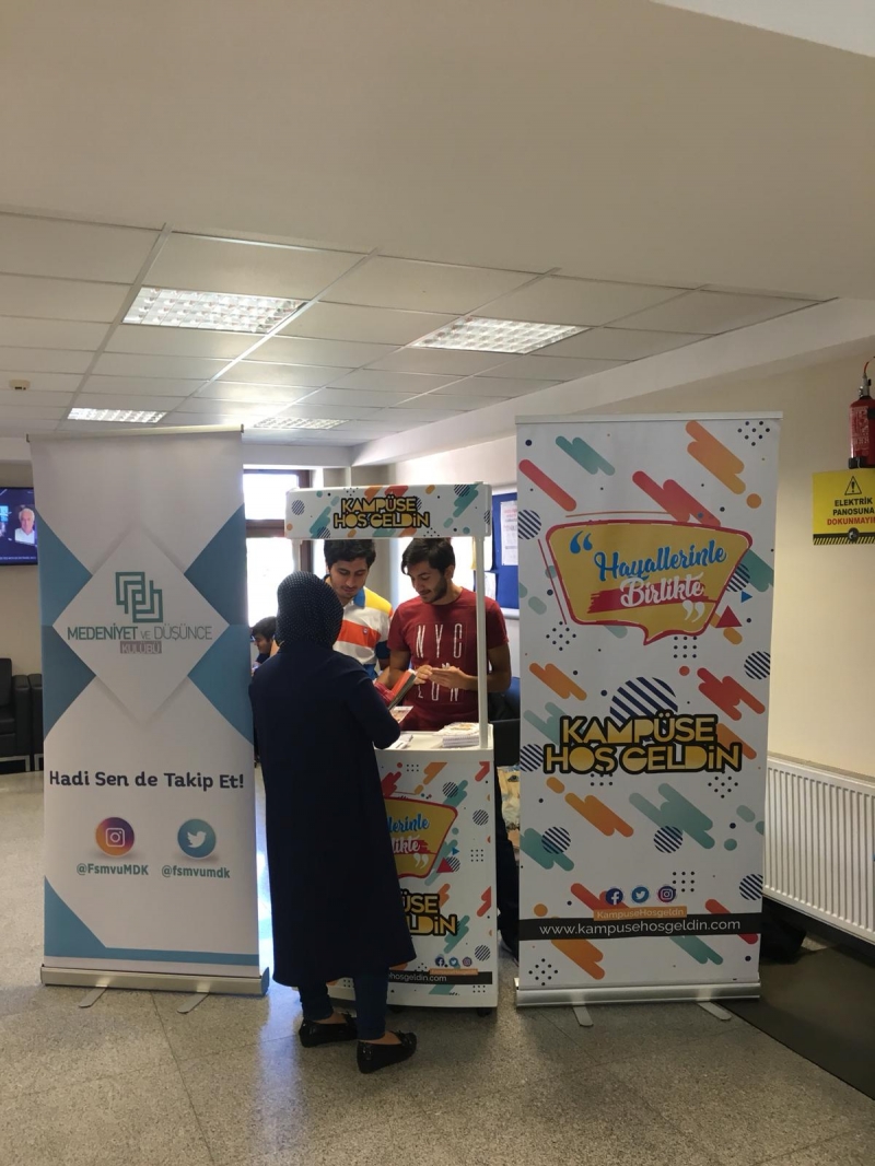 Üniversitemiz Medeniyet ve Düşünce Kulübü geleneksel olarak düzenlediği "Kampüse Hoş Geldiniz" stantlarını, Haliç, Küçük Çamlıca ve Topkapı Yerleşkkelerinde açarak, üniversitemizi yeni kazanan öğrencilere hoş geldiniz dedi.