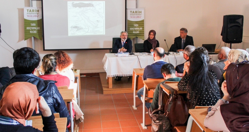 Tarih Araştırmaları Kulübü’nün özenli çalışmalarıyla hazırlanan panel programında ilk başlık “Ortadoğu’da Yeni Dengeler Arap Baharı ve Türkiye”ydi. Büşra Bulut moderatörlüğündeki panelde, Tarih Bölümü Başkanı Prof. Dr. Zekeriya Kurşun ve Öğretim Üyesi Yrd. Doç. Dr. Vehbi Baysan konuşmacı olarak yer aldı.