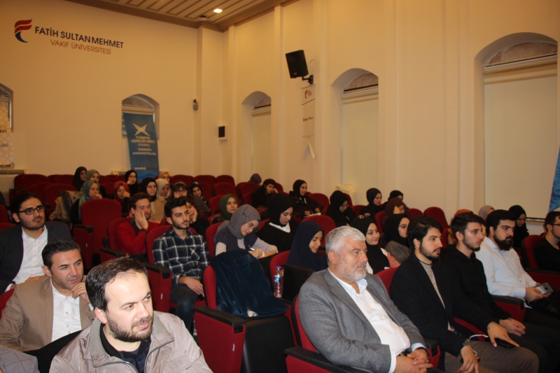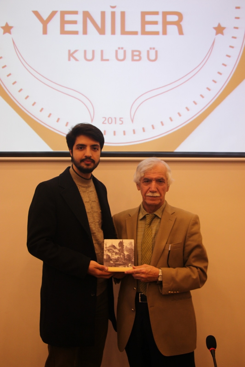 Üniversitemizin Yeniler Kulübü tarafından düzenlenen “Osmanlı Medeniyetinden Tablolar” konferansı Kültür Tarihçisi Dursun Gürlek’in katılımlarıyla gerçekleştirildi. Program öncesinde Üniversitemiz Tarih Ana Bilim Dalı Başkanı Prof. Dr. Zekeriya Kurşun Hocamız Dursun Gürlek Hoca’yı odasında ağırladı. Bu Hoş karşılamanın ardından konferansa geçildi. Kültür tarihçisi Dursun Gürlek Üsküdar’da bulunan Valide Cedid Cami, Valide Atik Cami ve Mihrimah Sultan Cami hakkında bilgiler verdi. Dursun Gürlek program esnasında kendi hayatından da kesitler anlatıp Osmanlı Türkçesinin önemi hakkında katılımcıları bilgilendirdi. Üsküdar Yerleşkemizin tarihi önemini de dile getiren Gürlek bânisi Nurbanû Valide Sultan olan tarihi Atik Valide Külliyesi’nde eğitim gören öğrencilerin çok şanslı olduğunu belirtti. Program sonunda Yeniler Kulübü tarafından Dursun Gürlek Hocamızıa hediye takdim edildi.