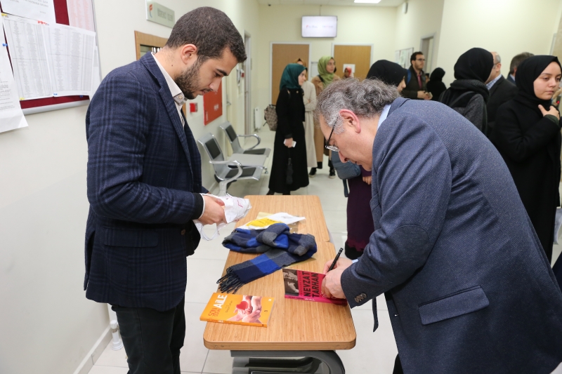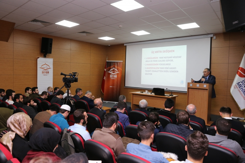 Üniversitemiz Siyer Araştırmaları Kulübü tarafından düzenlenen “İlk Günden Bugüne İman ve İnkar Psikolojisi” başlıklı program 16 Kasım’da Fatih yerleşkemizde gerçekleştirildi. Prof. Dr. Nevzat Tarhan’ın konuk olduğu programa öğrencilerimiz büyük ilgi gösterdiler. Prof. Dr. Nevzat Tarhan dünya medeniyeti ve yeni salgın deizim hakkında bilgilendirmelerde bulundu. Modernizim ile alakalı eleştirilerde bulunan Sn. Tarhan “Modernizm ile birlikte 3 kritik değişken var: Sekülerizm, Narsisizm, Materyalizm. Bu üçü modern çağın hastalıklarıdır.” dedi. “Dünya nereye gidiyor? Refah seviyesi arttı ama mutluluk azaldı. İngiltere’de yalnızlıktan sorumlu bakanlık kuruluyor. Üniversitelerde mutluluk bilimi dersleri veriliyor. Mesneviden alıntıları isimlerini değiştirerek okutuyorlar. Anadolu’nun irfan geleneğine biz sahip çıkmadığımız için Batı sahip çıkıyor” diyen Sn. Tarhan daha sonra kainatın bizleri tefekküre yönlendirdiğinden bahsetti.