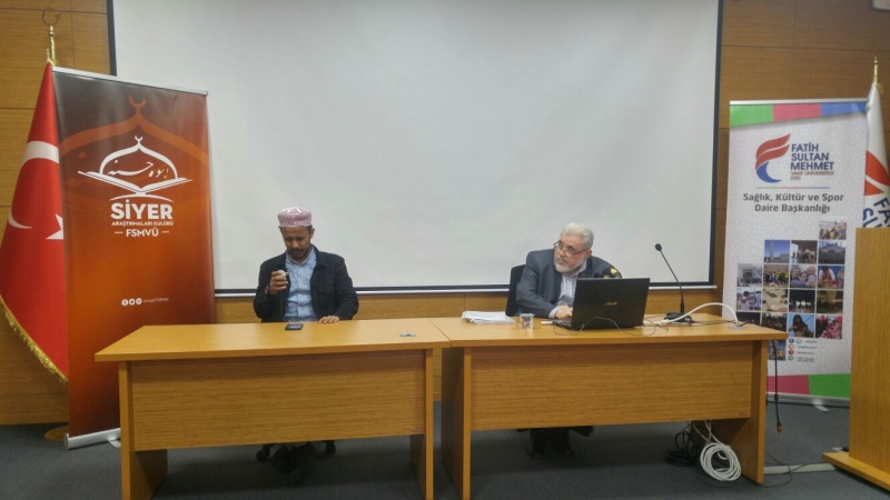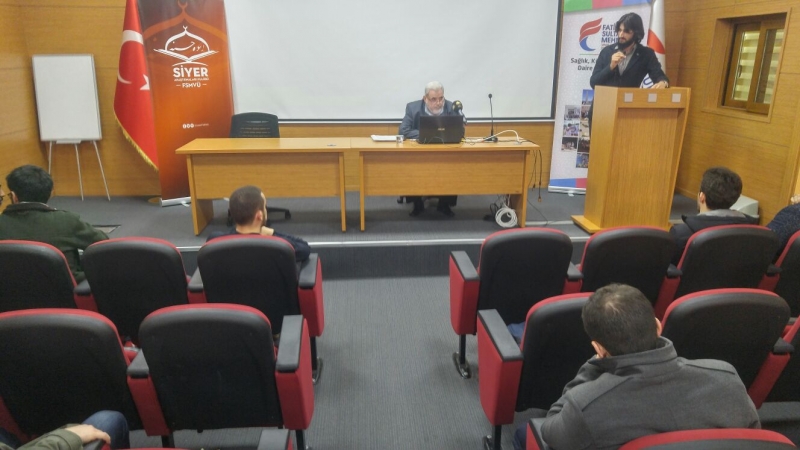 Üniversitemiz Siyer Araştırmaları Kulübü tarafından düzenlenen “Fî Ma’rifeti’l – Ashâb” adlı kitap tahlili programı 27 Mart Salı günü Doç.Dr. Leyth Suud Jassim Al Hammadi’nin katılımı ile Fatih Yerleşkesi Konferans Salonunda gerçekleştirildi.