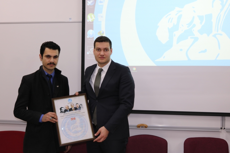 Üniversitemiz Stratejik Araştırmalar Kulübü tarafından 26 Mart Pazartesi günü Haliç Yerleşkesi'nde Ülkü Ocakları İstanbul İl Başkanı Sn. Kazım Erdi AKTUNÇ’un katılımıyla “AFRİN” konulu söyleşi gerçekleştirildi. Afrin’in öneminden bahseden konuşmacımız, yaşanan olayların ülkemizin ve milletimizin menfaatleri için hayati olduğundan bahsetti. Kulüp yöneticilerinin Sn. Kazım Erdi AKTUNÇ'a hediye takdimi sonrasında program sonlandırıldı.