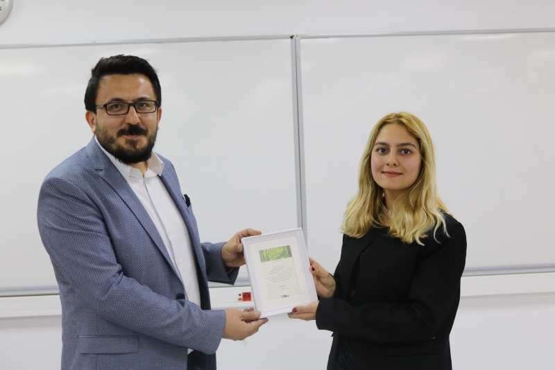 Soru cevap şeklinde devam eden programımız, Kulüp üyelerinin Sn. Murat ORUÇ adına Tema Vakfına yapılan fidan bağışına dair plaketi hocamıza takdim ederek sonlandırılmıştır.