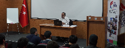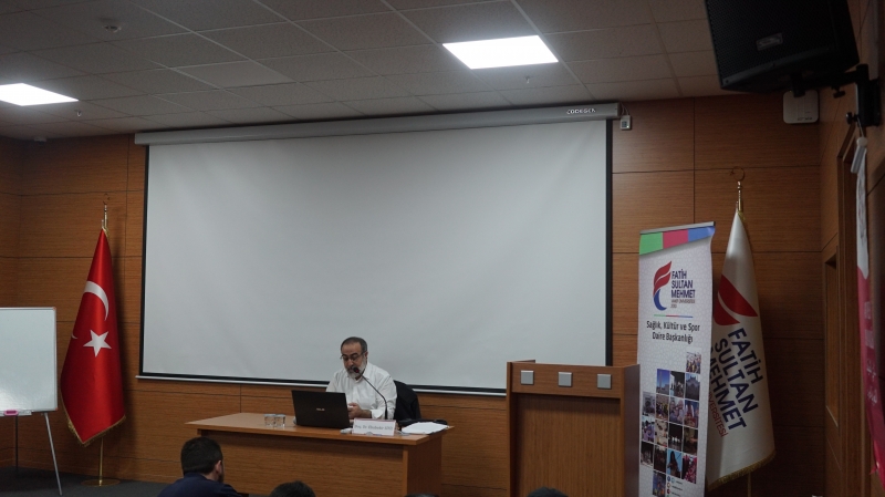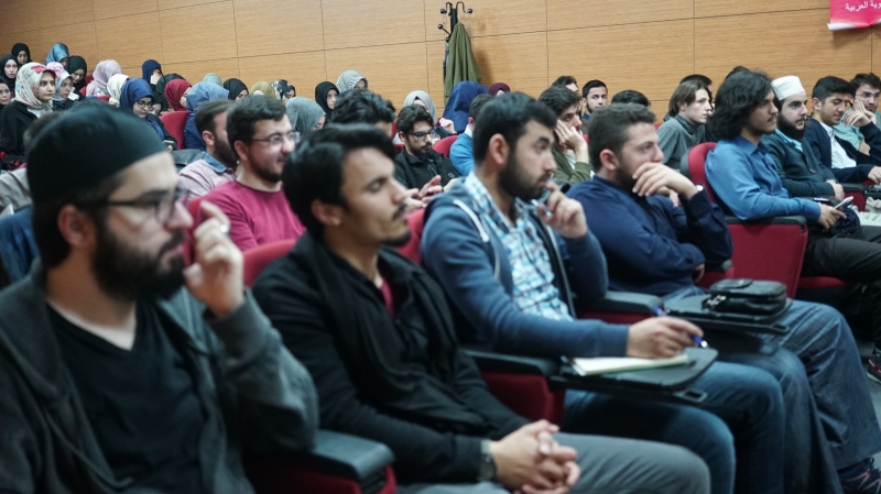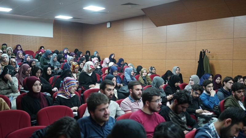 Üniversitemiz Arapça Mesleki Uygulama Kulübü tarafından düzenlenen "Tefekkür Sohbetleri Serisi” adlı konferansın ikincisi Doç. Dr. Sn. Ebubekir SİFİL’in katılımı ile 19 Nisan Perşembe günü Fatih Yerleşkesi konferans salonunda öğrencilerin yoğun katılımı ile gerçekleştirildi. Program güncel akaidi mevzular üzerine soru-cevap formatında ilerledi. Üç seri halinde gerçekleşecek olan programın ikincisi de yoğun katılım ile sonlandırıldı.