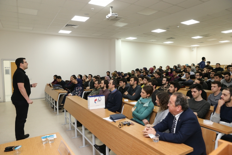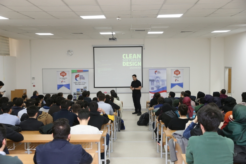 Üniversitemizin Yeni Nesil Arge Kulübü düzenlediği Temiz Kod Tasarımı konulu semineri 23 Mart Cuma günü gerçekleştirildi. Etkinlik konuşmacımız Lemi Orhan Ergin'in kendini tanıtması ile başladı. Büyük projelerin içerisinde bulunan yazılımcı ve yazılımcı gruplarının, proje geliştirme aşamasında dikkat edilmesi gereken adımları konu alan seminerde TDD, coupling, cohesion gibi konuların üzerinde duruldu. Yazılan kodun sadece anlık çalışması değil, ileriye dönük bakımlarının da yapılacağı düşünelerek geliştirilmesi gerektiği ve önemi vurgulandı. Program sonunda Lemi Orhan dinleyicilerden gelen soruları cevaplandırarak semineri noktaladı. Ali Yılmaz hocamızın üniversitemiz adına Lemi Orhan'a hediye vermesi ve fotoğraf çekimi ile etkinlik sonlandı.