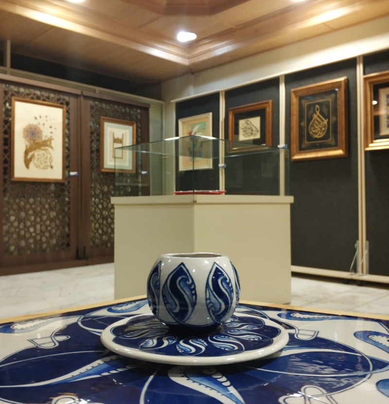 Konuşma sonunda yerleşkedeki hat sanatı sergisi gezildi. Çay, simit eşliğinde keyif alarak güzel bir söyleşi gerçekleştirildi.