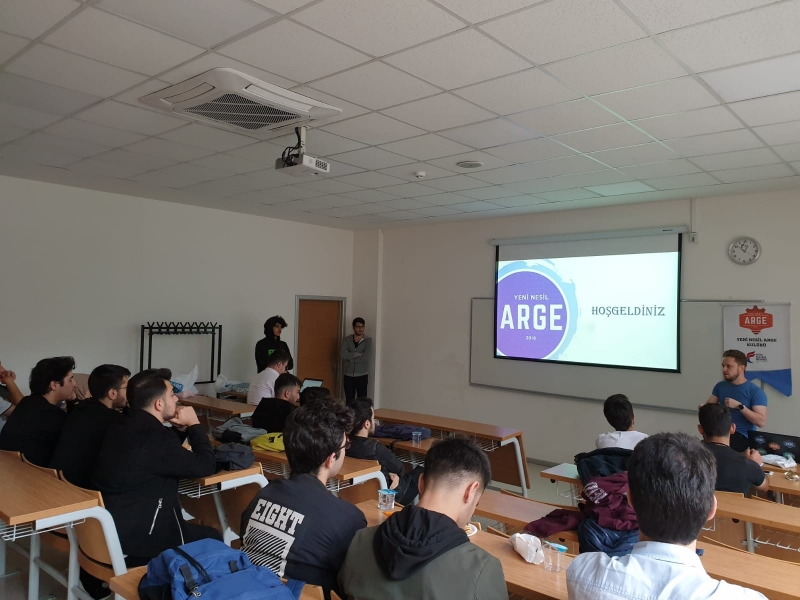Üniversitemiz Yeni Nesil Arge kulübü tarafından düzenlenen tanışma toplantısında yeni gelen öğrencilere kulübün amacı, işleyişi ve kulübün faaliyetleri hakkında bilgiler verildi. Kulüp Danışman Hocası Arş. Gör. Samet Kaya’nın da bulunduğu toplantıda, kulüpteki öğrencilerden ne beklenildiği, kulübü nasıl daha aktif hale getirilebileceği hakkında fikir alışverişlerinde bulunuldu. Bununlar birlikte üniversiteden mezun olduktan sonra, öğrencileri nelerin beklediği ve bu sürece hazır olmaları için yapmaları gerekenler anlatıldı. Okul içinde kulüp faaliyetlerine katılımı ve bu çalışmalarda faal yer almalarının onlara iş hayatındaki artılarından bahsedildi. Samet Hoca’nın dışında Kulüp Yönetim Kurulu’ndaki öğrencilerde deneyimlerini ve tecrübelerini yeni gelenlere aktardı.